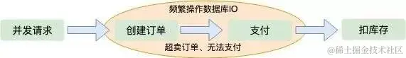 那么有没有一种不需要直接操作数据库 IO 的方案呢,这就是预扣库存。先扣除了库存,保证不超卖,然后异步生成用户订单,这样响应给用户的速度就会快很多;那么怎么保证不少卖呢?用户拿到了订单,不支付怎么办?