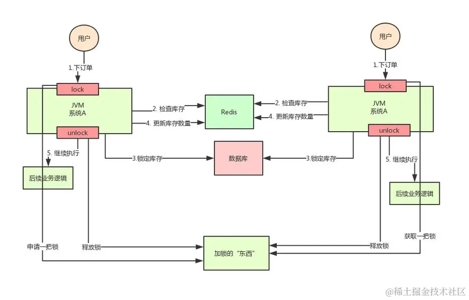 系统A是一个电商系统,目前是一台机器部署,系统中有一个用户下订单的接口,但是用户下订单之前一定要去检查一下库存,确保库存足够了才会给用户下单。