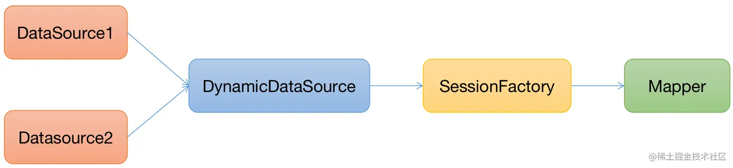 多数据源实现思路有两种,一种是通过配置多个SqlSessionFactory实现多数据源;
