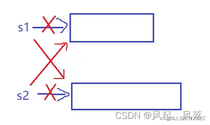 - 修改s1指针指向原来s2指向的空间,修改s2指针指向原来s1指针指向的空间