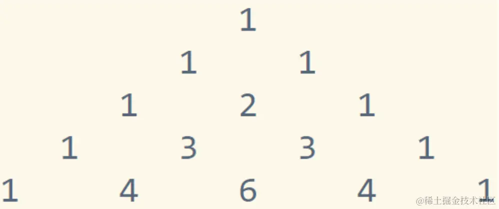 杨辉三角还有很重要的一个规律,每行每列的数对应着一个组合数算出来的结果,如C(5,3) = 10,对应杨辉三角中第6行第4个数为10。再比如C(4,2) = 6,对应杨辉三角中第5行第3个数为6。