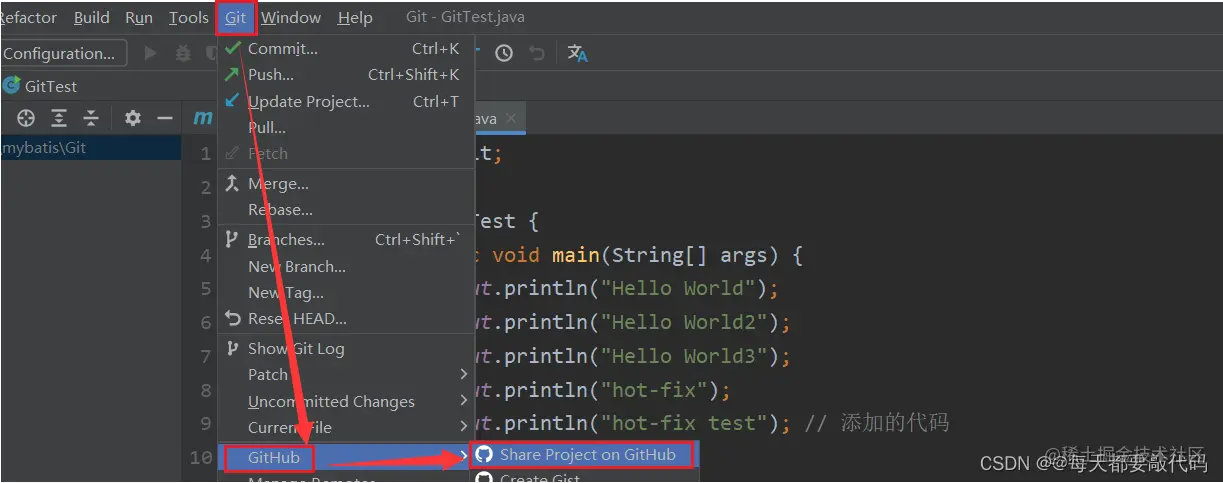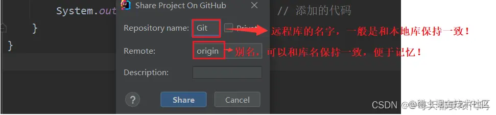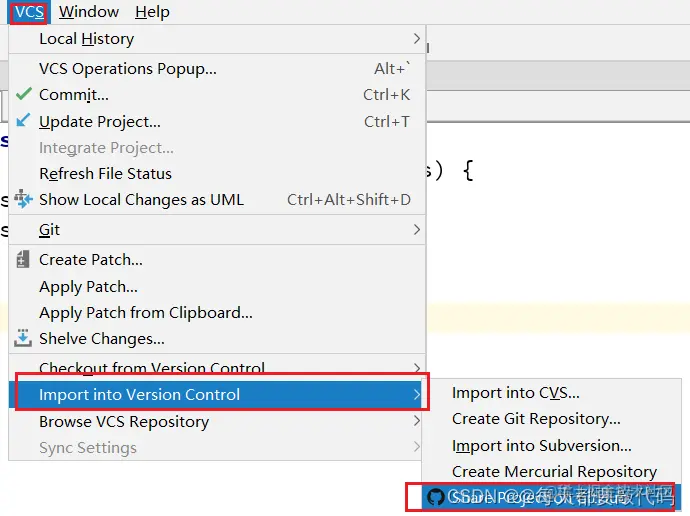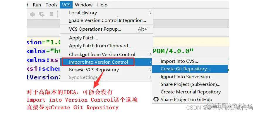 对于新版本的IDEA是Git(是VCS的位置)---》GitHub---》Share Project on GitHub