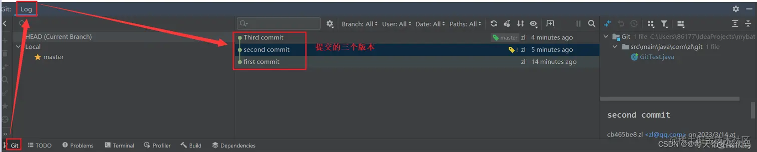 点击IDEA左下角的Git,可以查看版本