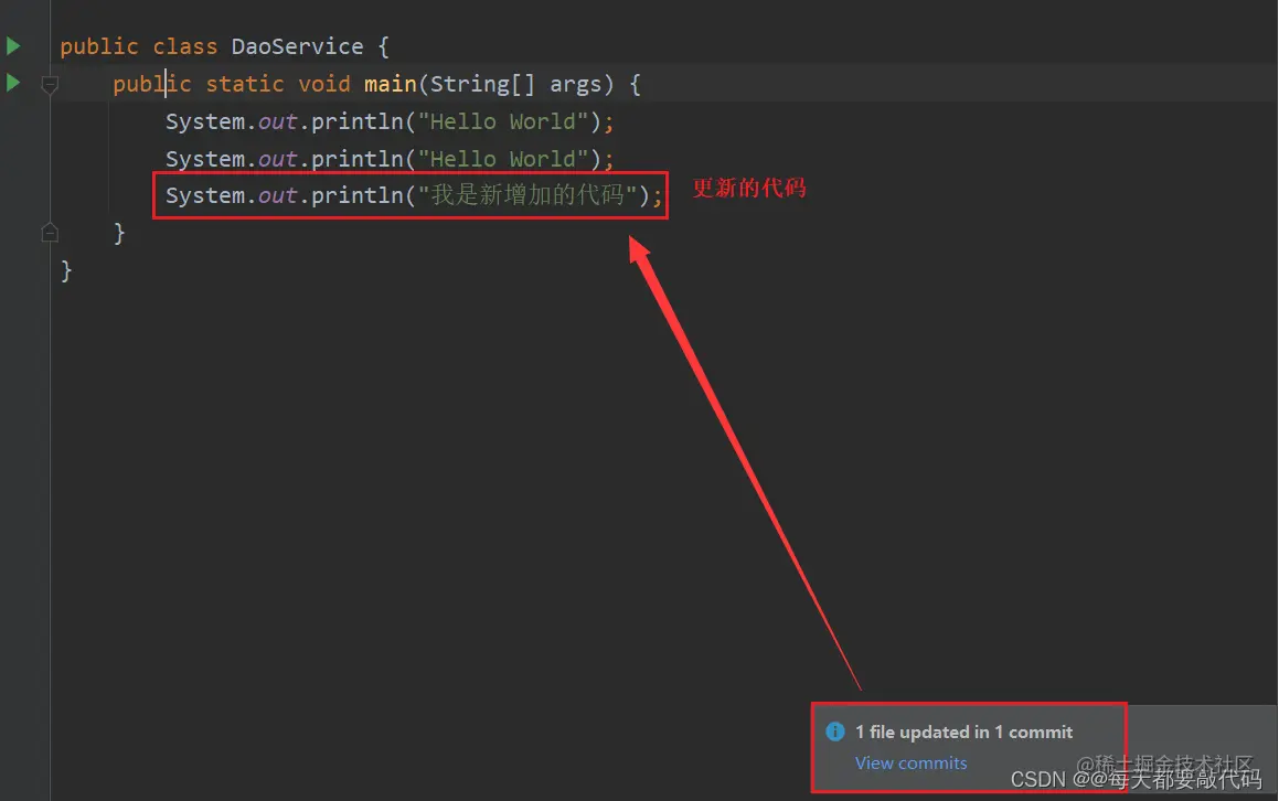 System.out.println("我是新增加的代码");