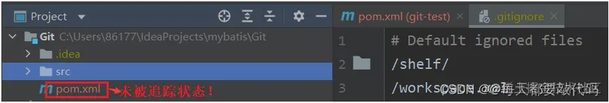 此时pom.xml文件是红色的,意思就是检测到是未被追踪状态
