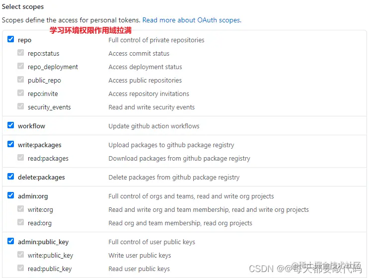 学习环境权限作用域都点上