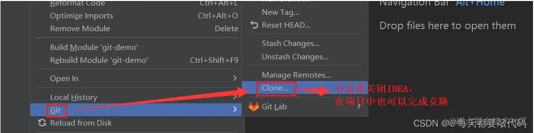 假如此时本地没有git-demo项目,或者说我们把这个项目从本地删除了,此时可以进行克隆