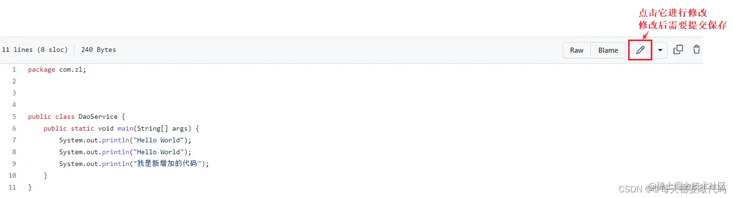 如果此时我们在远程库手动更改了代码,此时要把项目pull到本地,得到最新的更改版本!