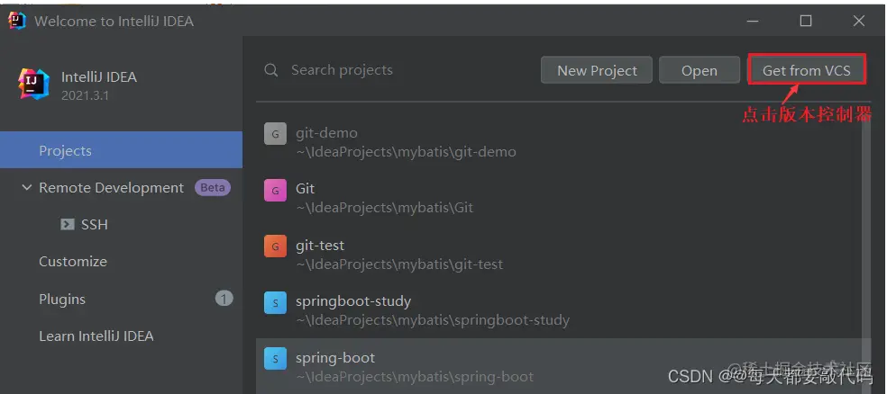 当然我们也可以在打开IDEA的时候进行clone,最终界面是一样的