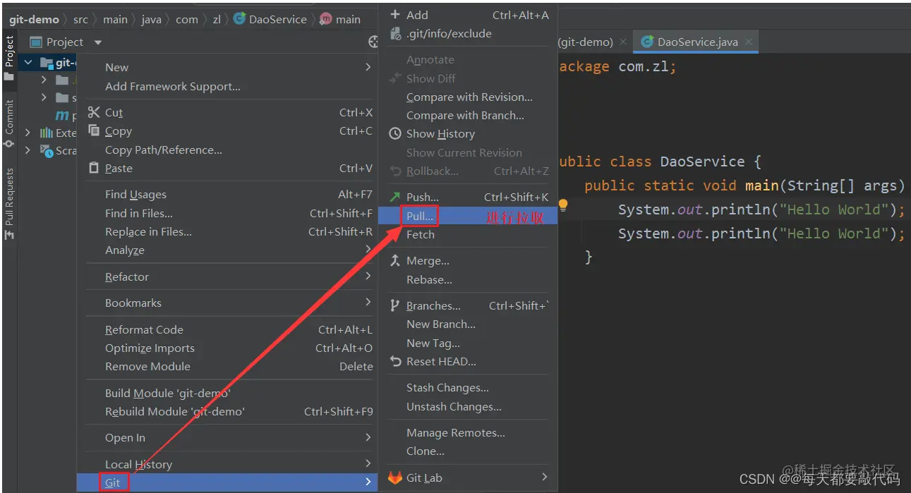 选择Git---》pull进行拉取