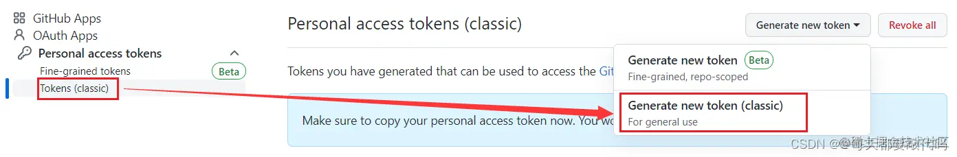 第二种: personal access token (classic),即个人访问令牌(分类化)。