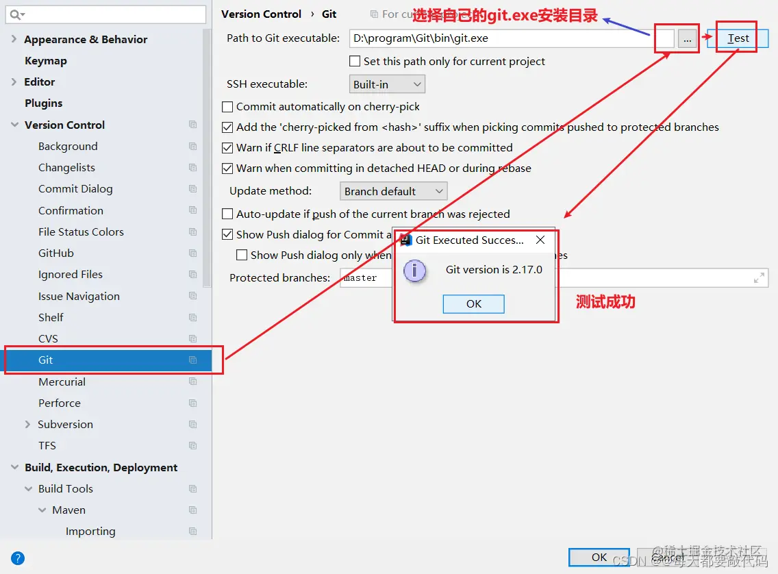 在Version Control(版本控制工具)----》Git中进行定位!