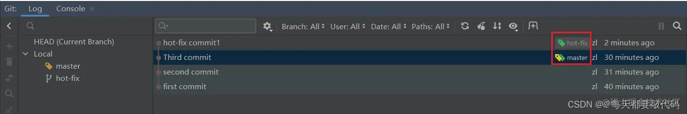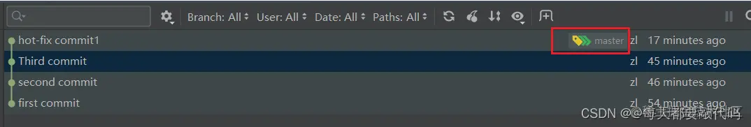 此时的master和hot-fix就合并到同一个分支!