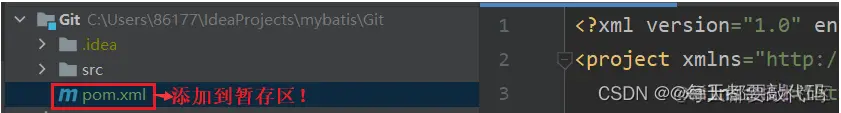 此时pom.xml文件是绿色的,意思就是已经添加到暂存区