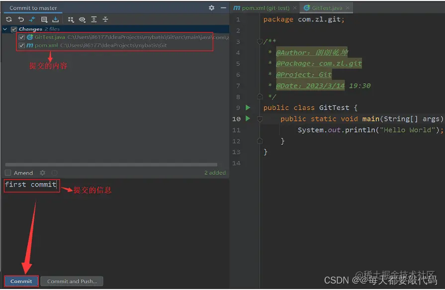 对于master分支,添加代码并提交
