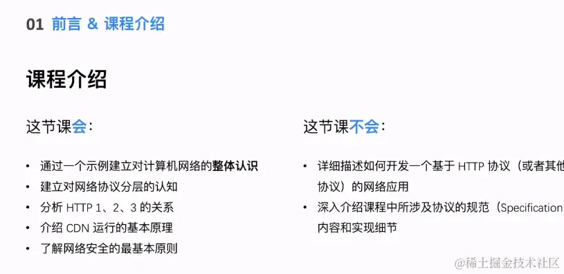课程目标: 建立对计算机网络的整体认知,对计算机网络中的各种概念(网络分层、网络协议、网络应用等)有初步的理解。进而可以在后续的实际工作中能高效解决网络问题