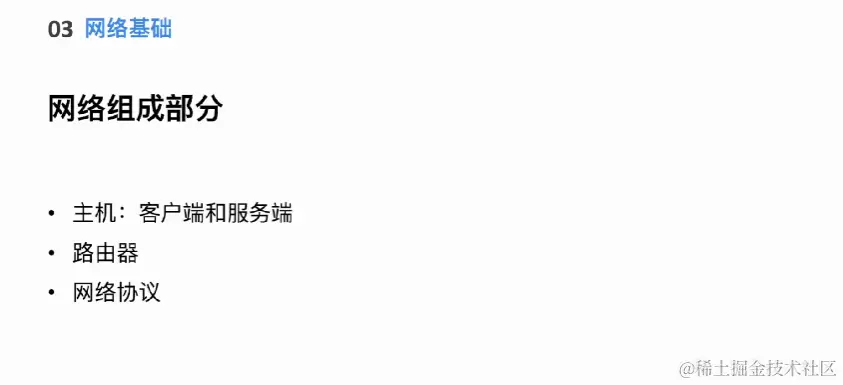 网络组成部分: 由主机、路由器、交换机等组成