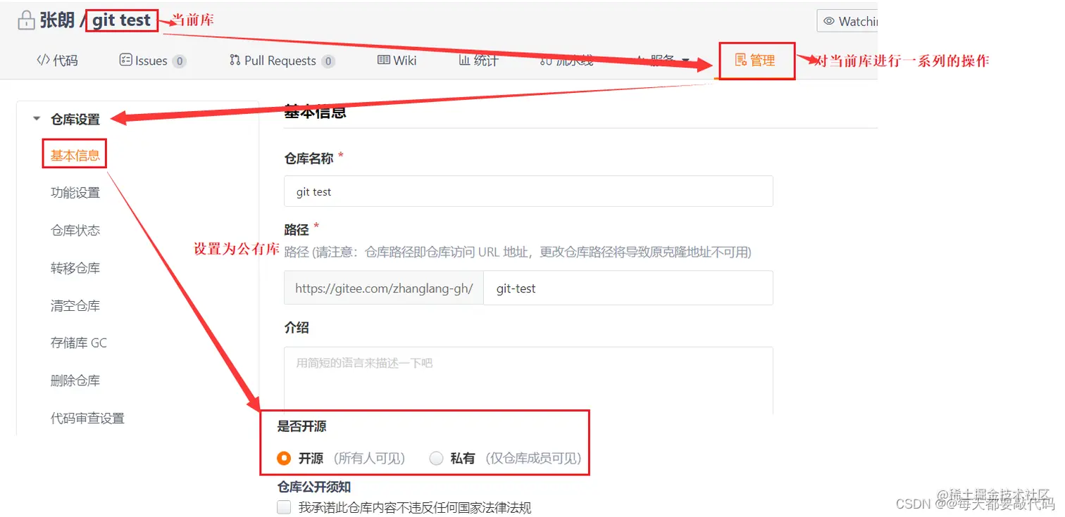 填写仓库名称,路径和选择是否开源(现在默认只能是私有库了,可以在仓库管理进行更改)