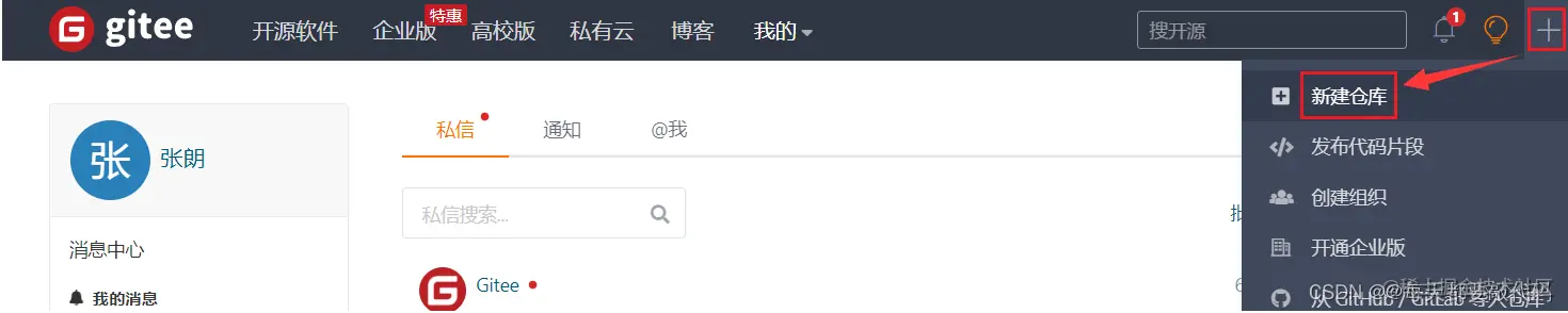 码云是开源中国推出的基于 Git 的代码托管服务中心,网址是gitee.com/,自己进行注册登录,使用方式跟 GitHub 一样,而且它还是一个中文网站(很流畅),如果你英文不是很好它是最好的选择。