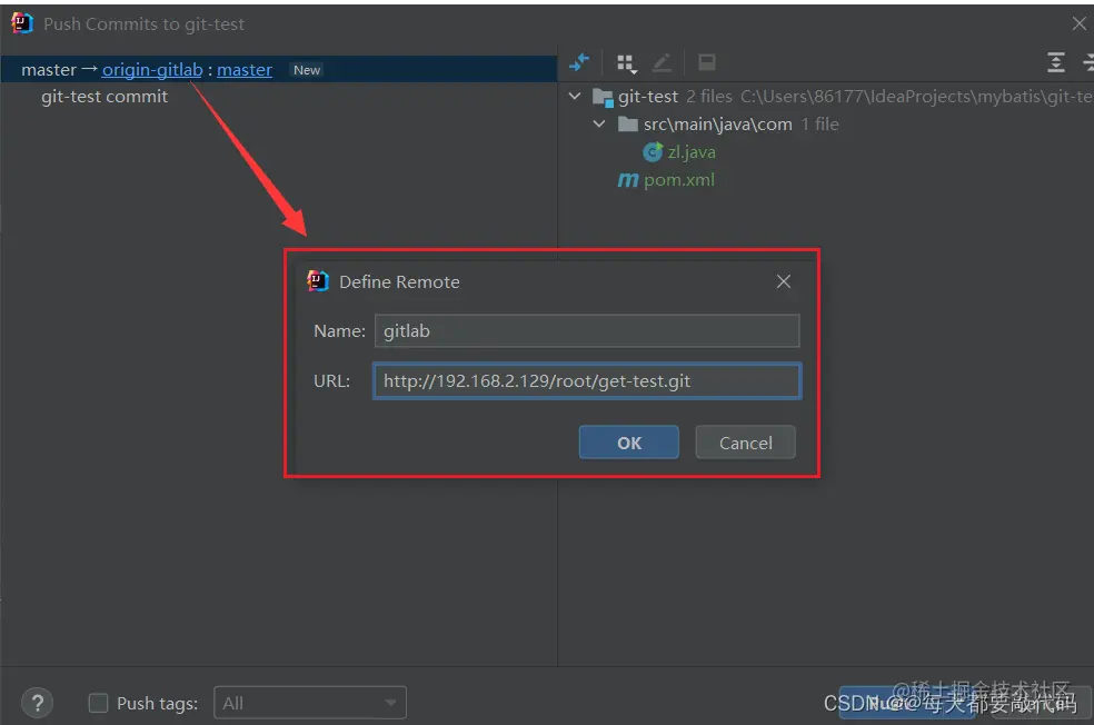 http://gitlab.example.com/root/get-test.git // 复制过来的地址连接