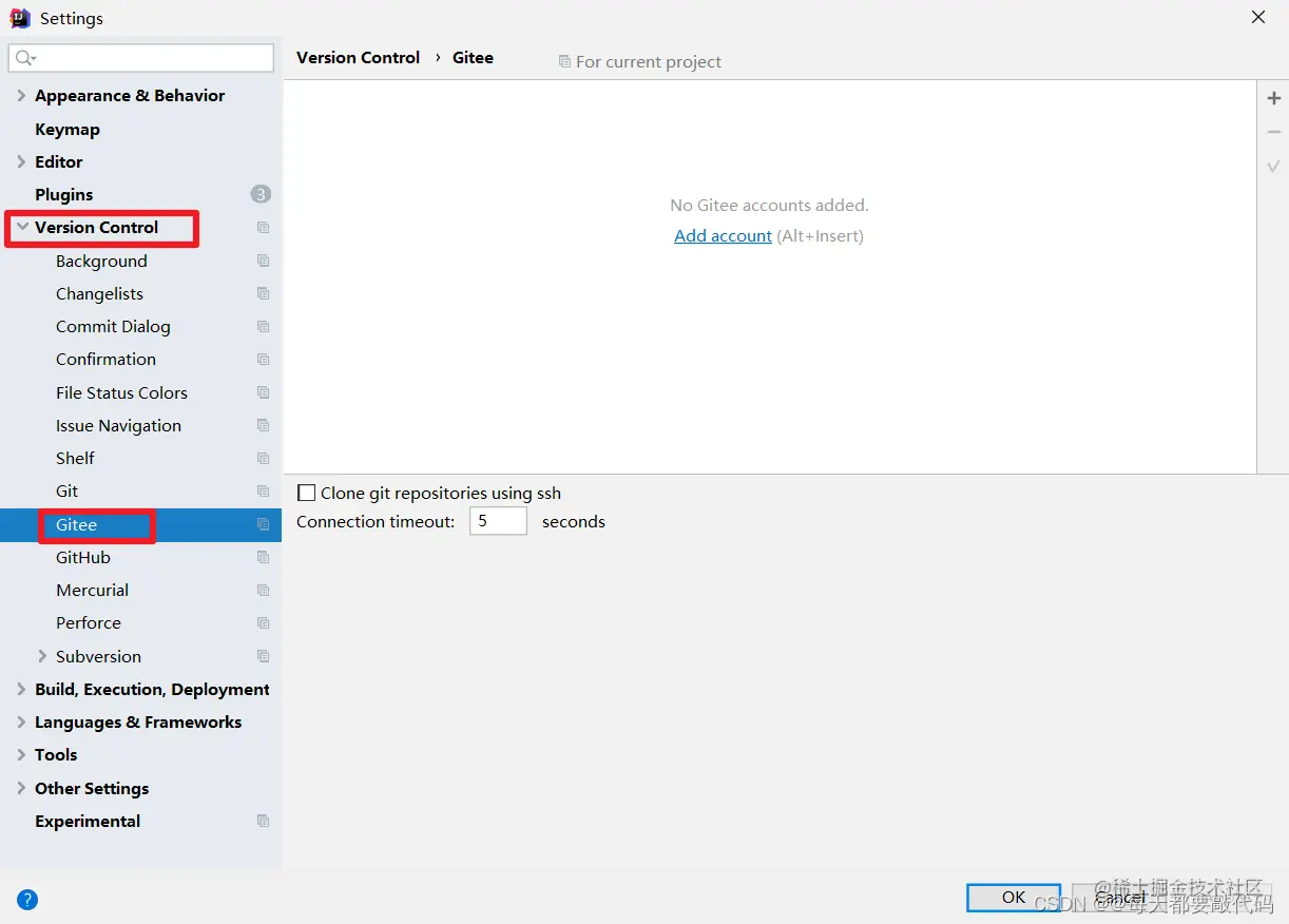 在 Version Control 设置里面看到 Gitee,说明码云插件安装成功