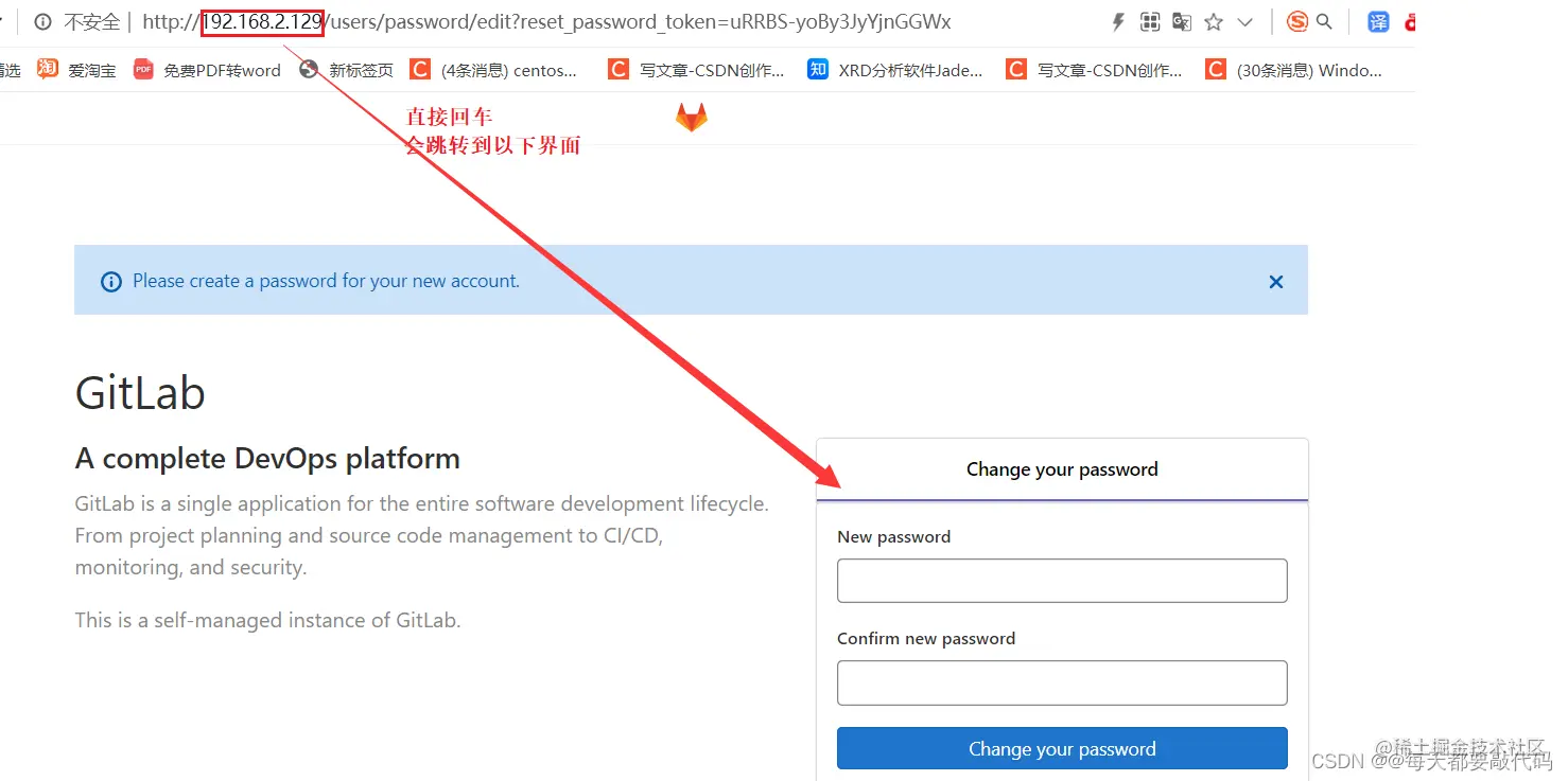 使用主机名(c1)或者 IP (192.168.2.129)地址即可访问 GitLab 服务都可以。