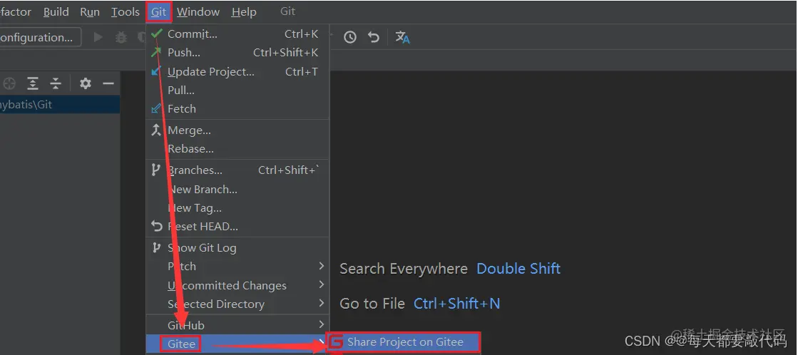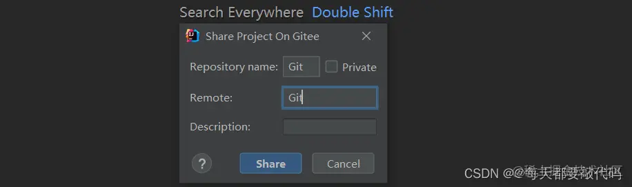 第一种推送方式:Git--->Gitee--->Share Project on Gitee