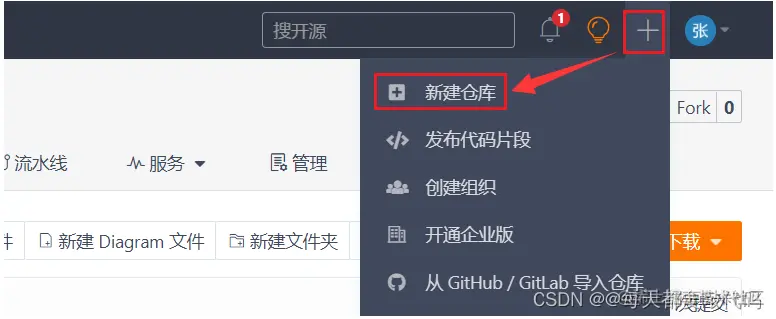 ①点击+,然后选择从GitHub/GitLab中导入仓库