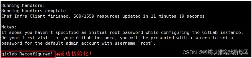 执行以下命令初始化 GitLab 服务,过程大概需要几分钟