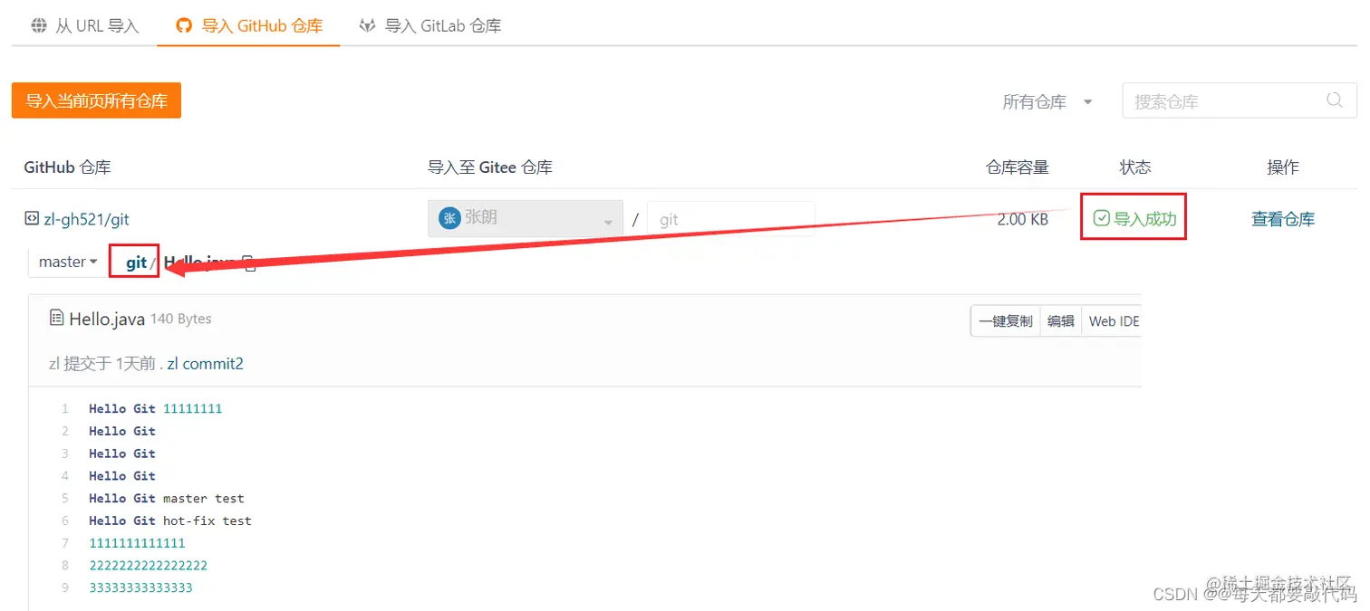 注: 只要码云远程库链接定义好以后,对码云远程库进行 pull 和 clone 的操作和 Github 一 致!
