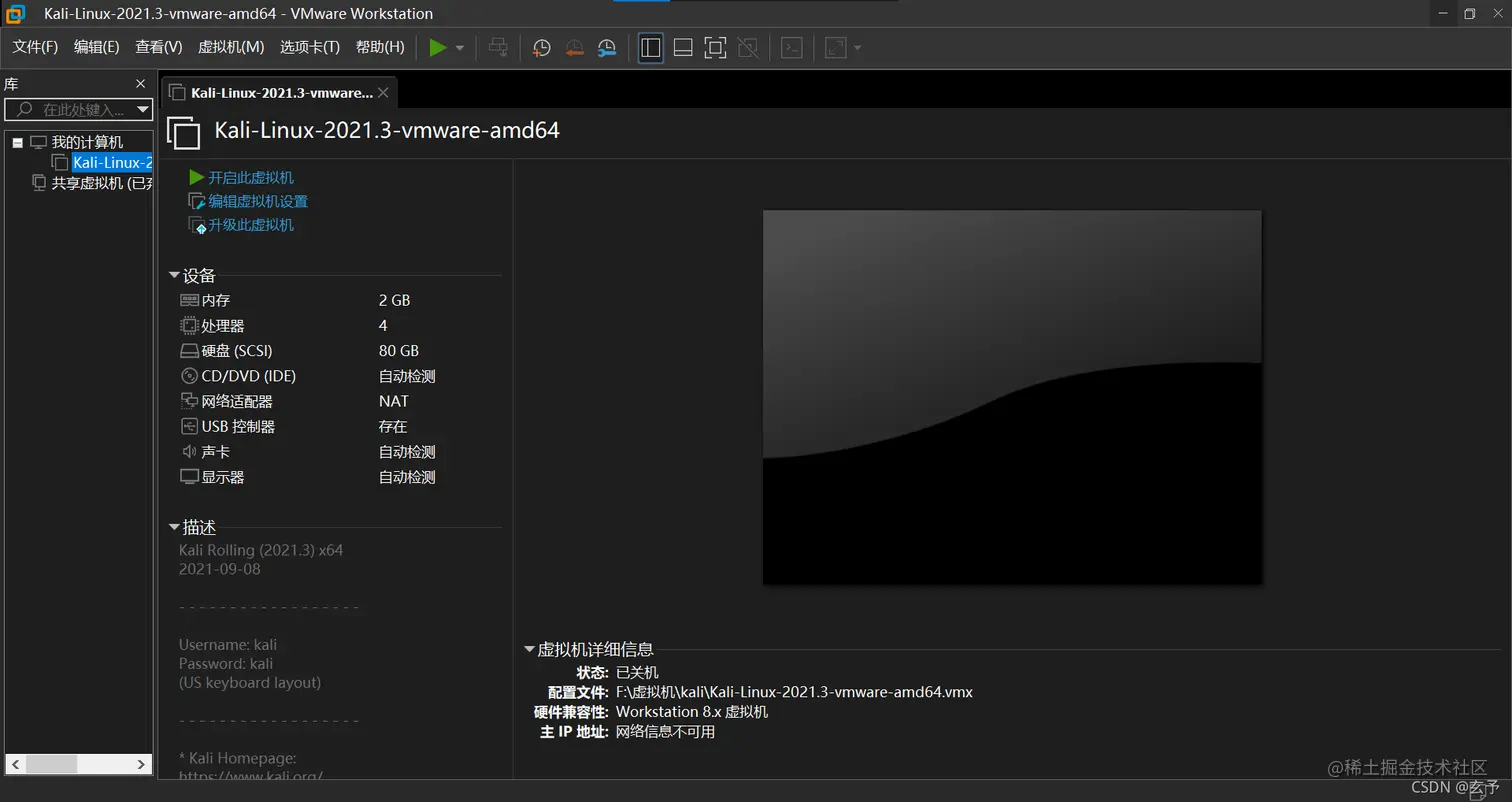 2:安装kali官方虚拟机文件