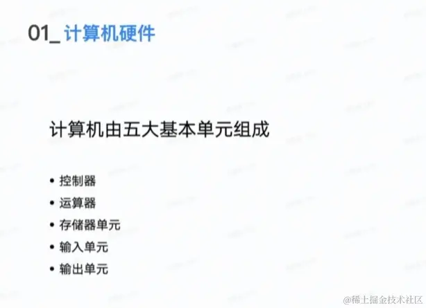5、输出单元:输出计算机处理结果。(显示器等)