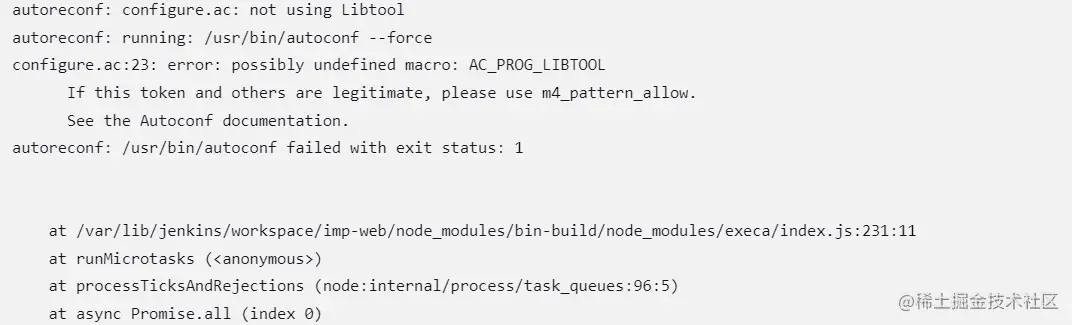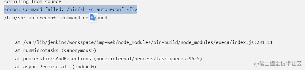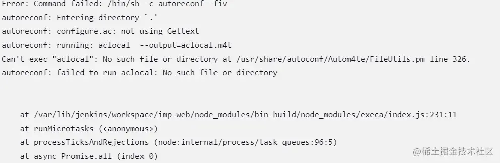 npm ERR! Command failed: /bin/sh -c autoreconf -fiv