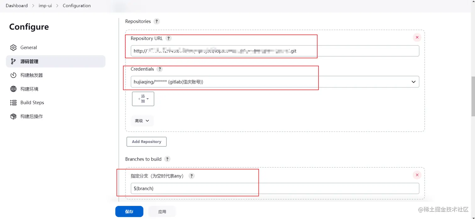 如下图所示,配置对应的仓库地址,凭证。