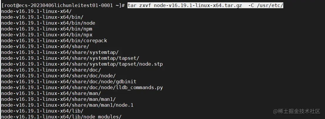 tar zxvf node-v16.19.1-linux-x64.tar.gz -C /usr/etc/