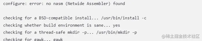 如出现上面错误,执行下面命令,安装nasm