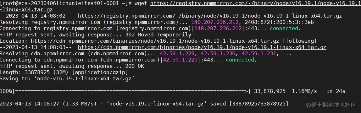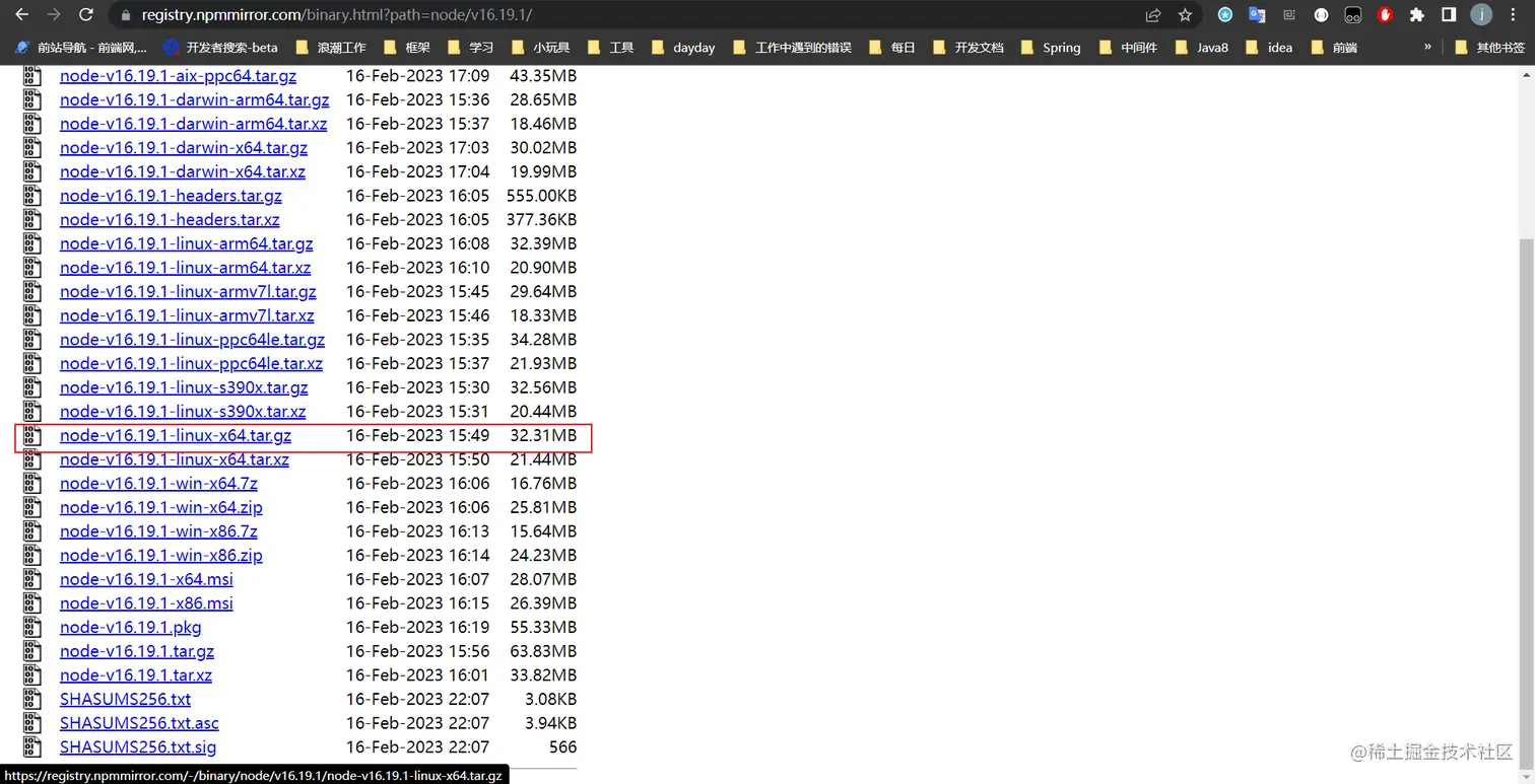 wget https://registry.npmmirror.com/-/binary/node/v16.19.1/node-v16.19.1-linux-x64.tar.gz