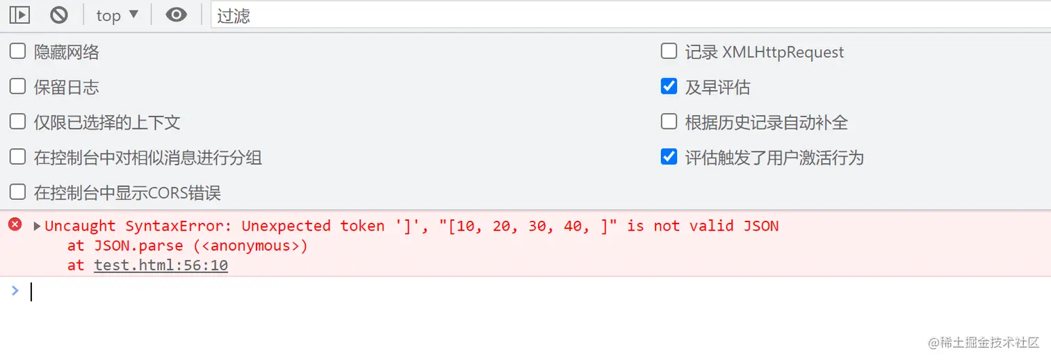 下面的使用 JSON.parse() 将会报错、