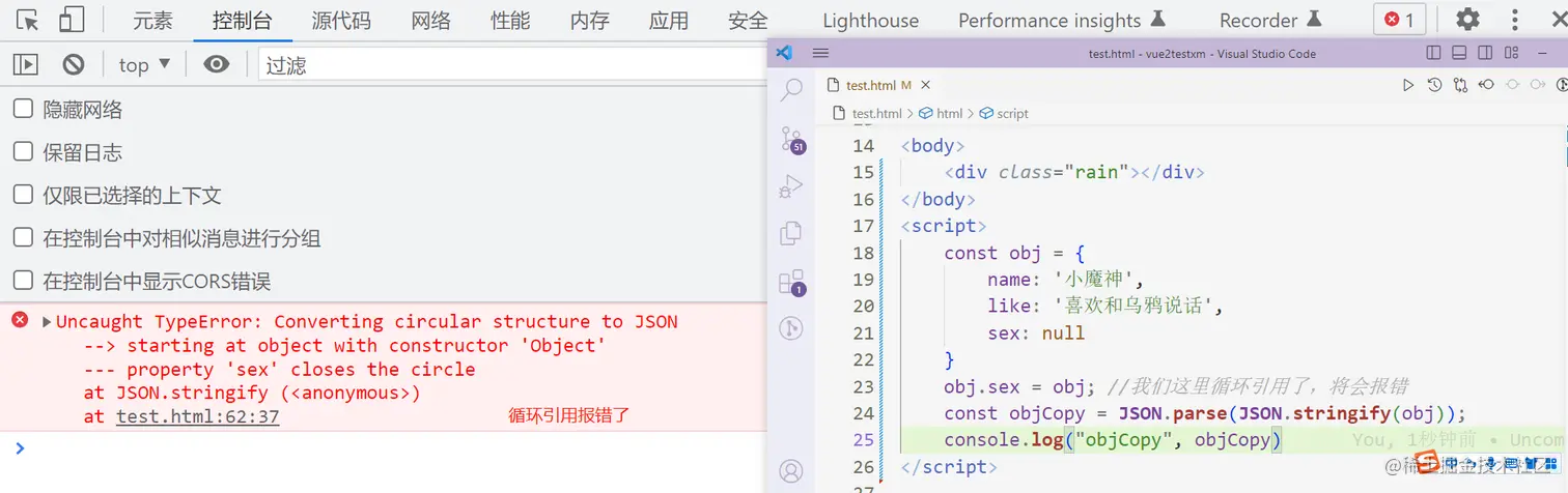 7.循环引用的对象将会抛出错误