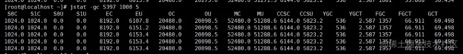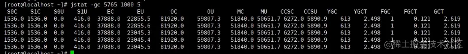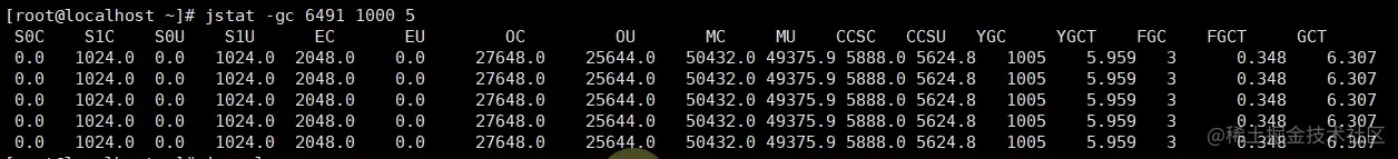 jstat -gc 进程id 间隔时间(毫秒)次数