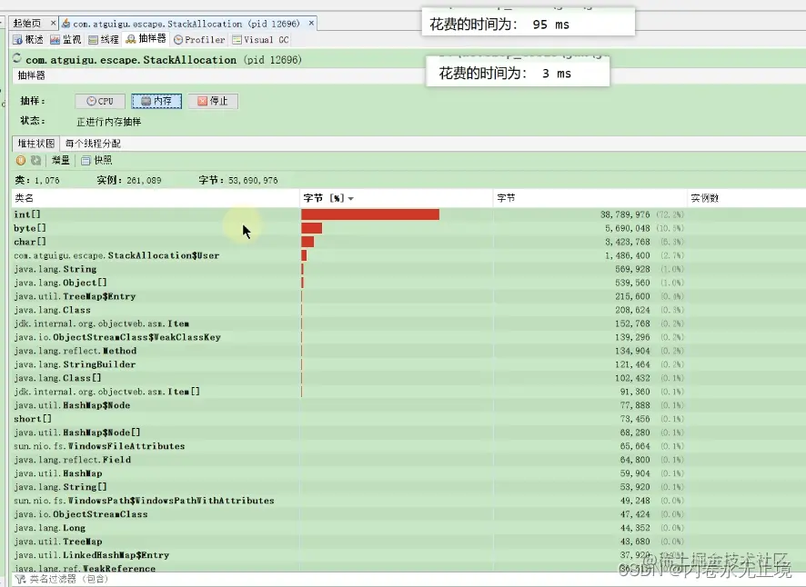 4.2.1栈上分配测试(并没有分配一个个对象,而是用变量替换去体现出来)