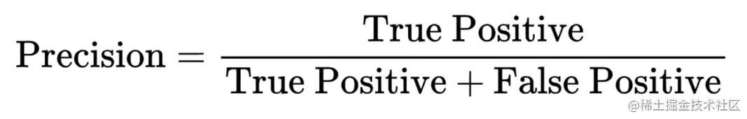 其中,Precision 是指精度,True Positive 指分类器正确判断为正例的样本数,False Positive 指分类器错误判断为正例的样本数。精度越高,说明模型的分类效果越好。