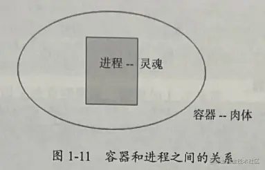 我们把容器理解为人的肉体,里面运行的进程理解为人的灵魂。如果人的灵魂宕机了,则肉体也就宕掉了,只有灵魂正常运行,肉体才能正常运行,如图1-11所示。