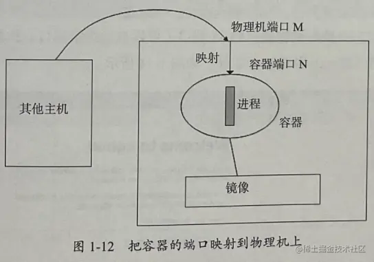 外部主机(即本机之外的其他主机)是不能和容器进行通信的,如果希望外部主机能访问到容器的内容,就需要使用-p把容器的端口映射到物理机上,以后访问物理机对应的端口就可以访问到容器了,如图1-12所示。