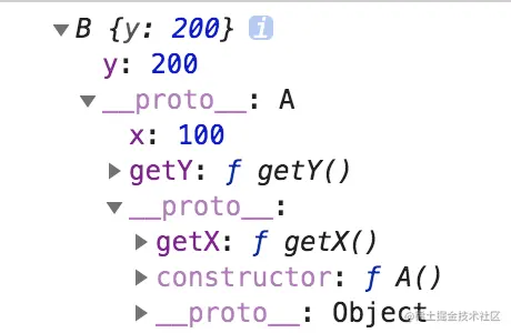 B.prototype = new A; // B子类 => A父类,让子类B的原型指向父类A的实例