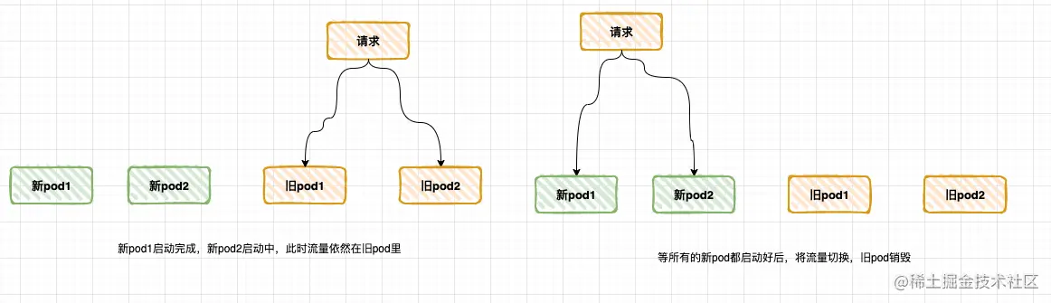 看了下项目在k8s配置的更新策略,发现是滚动更新: