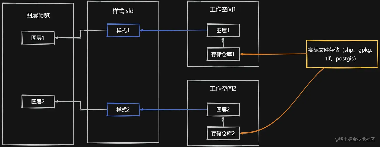 实际数据文件(比如shp)与样式的结合 - 存储仓库就是实际文件的存储的连接