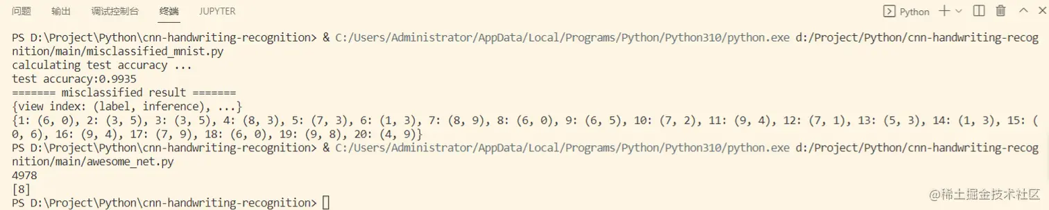 可以看到准确率在99.35%。识别到的数字为8。