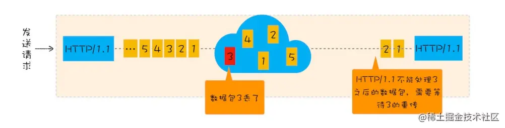 TCP的队头阻塞由于单个数据包的丢失而造成的阻塞