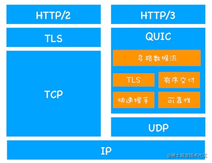 - HTTP/2 和 HTTP/3 协议栈比较